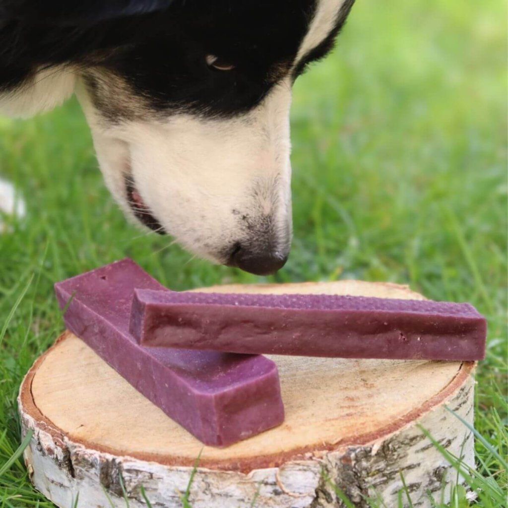 Ve spojení s pomalu sušeným kvalitním mlékem, které je cenným zdrojem bílkovin a vápníku a má jen minimální obsah laktózy, představuje Chlupatý mlíko s borůvkami dokonalý pamlsek pro malé i velké hafany. Ti si navíc okusováním mlíka prospějí svým zoubkům, a ještě se spolehlivě zabaví.