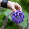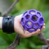 Míč je vyrobený z měkkého, netoxického přírodního kaučuku, takže je příjemný na kousání a žužlání, ale zároveň je dostatečně odolný. Jen pozor, ve vodě děrovaný míč neplave.
