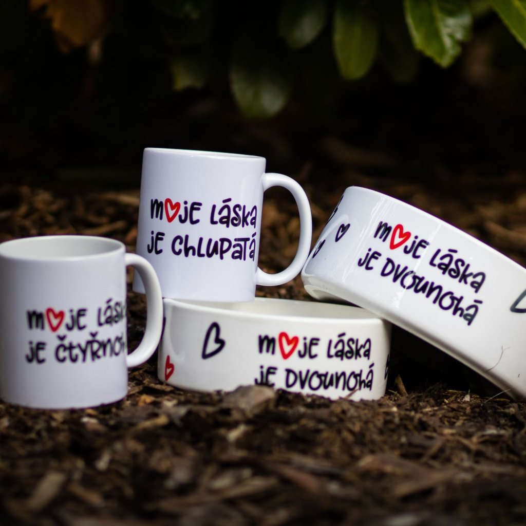 Je vaše láska chlupatá nebo čtyřnohá? Dopřejte si srdíčkový hrnek na kávu nebo čaj a pro svého chlupáče stylovou misku. Obojí se skvěle hodí i jako dárek k svátku nebo narozeninám pro všechny milovníky chlupáčů.