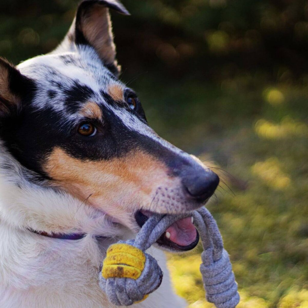 Jeden druh provazových hraček je pro vašeho psa málo? Pořiďte mu k nim třeba Míč na laně, Psí činku nebo Přetahovací cop!