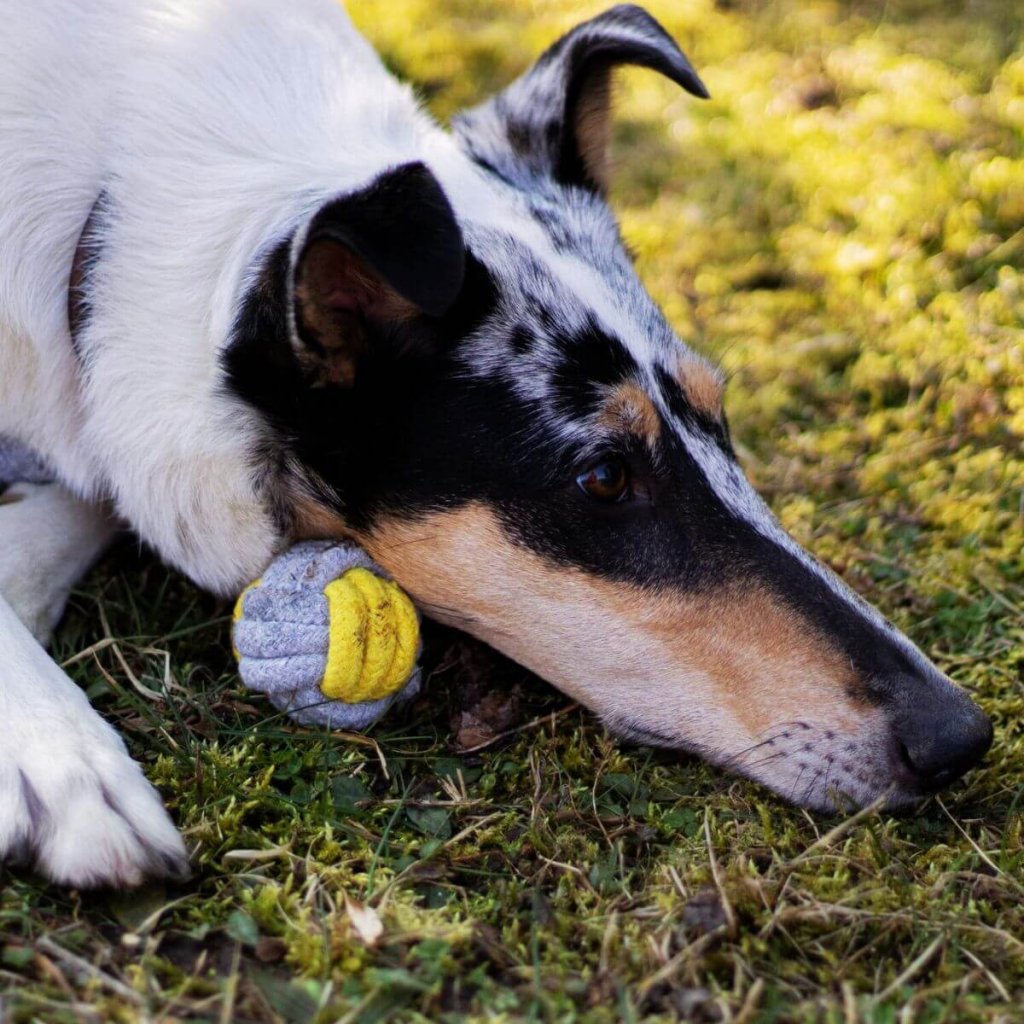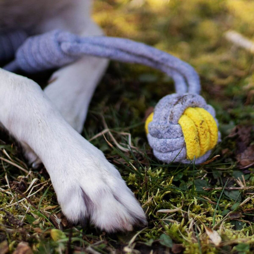 Koule na laně budou pro vašeho pejska dobře viditelné – žlutá totiž patří k barvám, které psí oko vnímá, a v kontrastu se šedivou se tahle hračka neztratí ani v trávě.