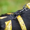Jednoduše se zapínají pomocí spony a vybaveny jsou kovovým očkem na připevnění vodítka pro psa. Jsou lehké a pohodlné, takže v nich bude pejsek jako v bavlnce.