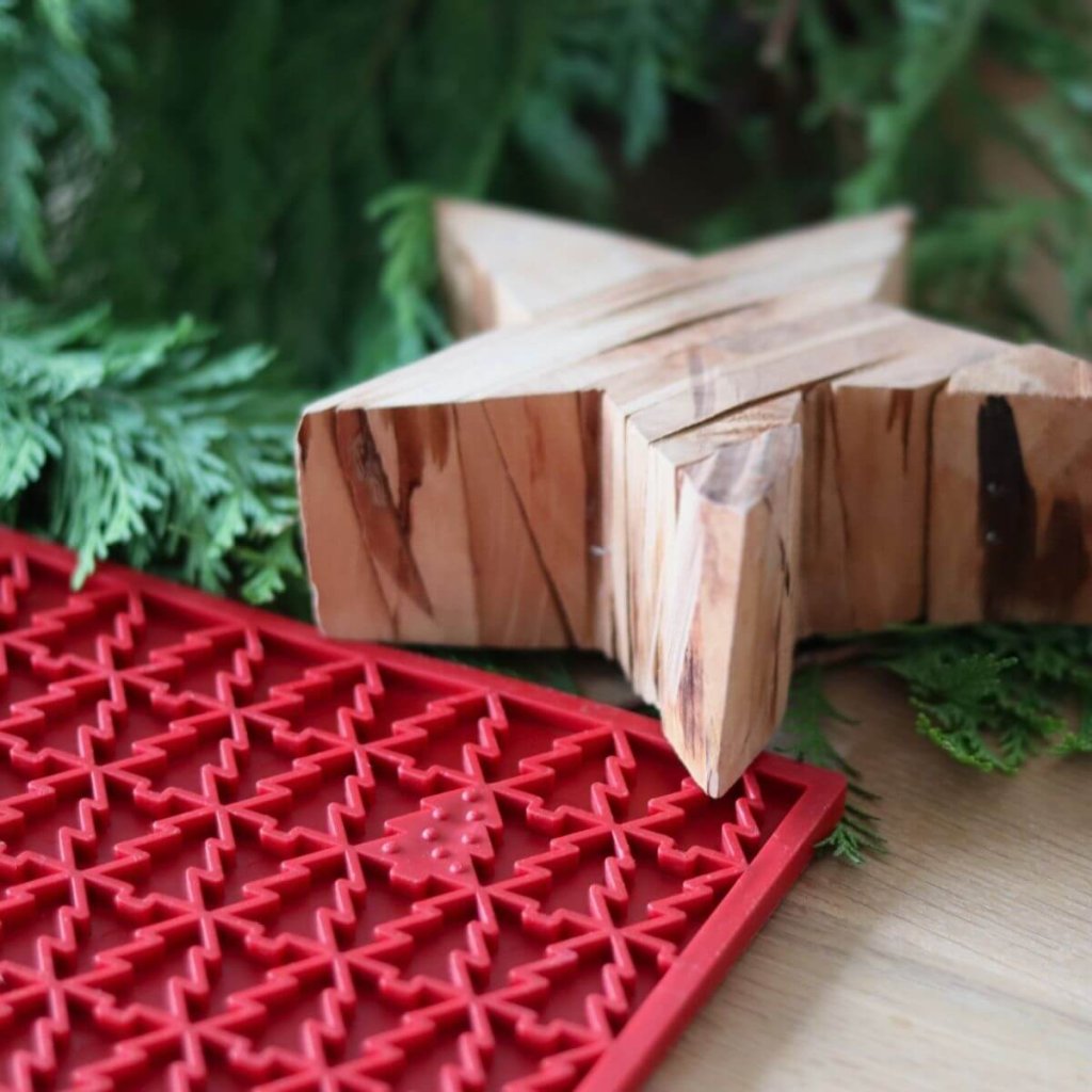 Vánoční lízací podložka. Materiál zdravotně nezávadný silikon (lze mýt v myčce). Velikost 20 x 20 cm.