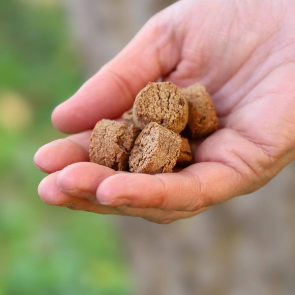Piškoty jsou bezlepkové, upečené jen z kvalitních regionálních surovin a šetrně zpracované suchým vzduchem, takže z nich nezmizely žádné zdraví prospěšné látky. Na chemické konzervanty, barviva nebo ochucovadla můžete také klidně zapomenout! Tyhle pamlsky se zkrátka za své složení nemusejí stydět!