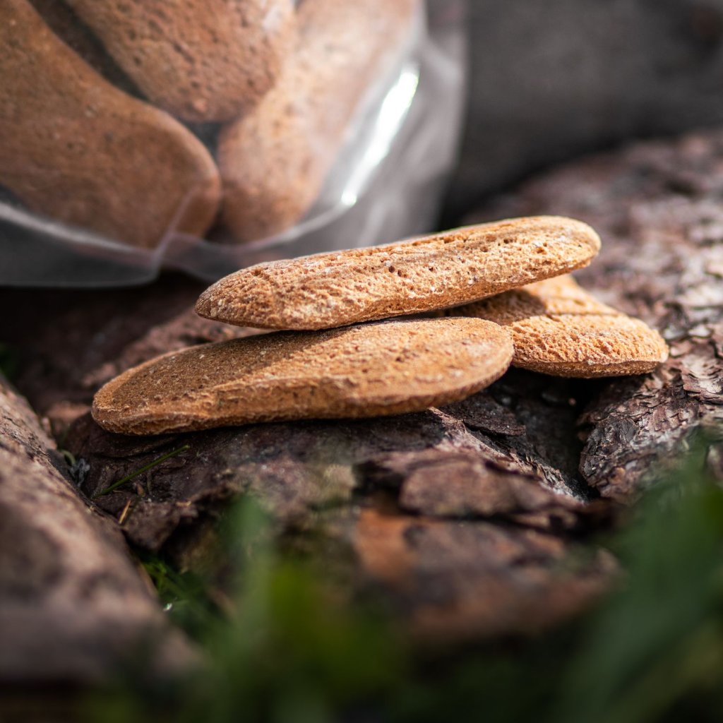 Navíc jsou suchary upečené jen z kvalitních regionálních surovin a šetrně zpracované suchým vzduchem, takže z nich nezmizely žádné zdraví prospěšné látky. Na chemické konzervanty, barviva nebo ochucovadla můžete také klidně zapomenout! Tyhle pamlsky se zkrátka za své složení nemusejí stydět!