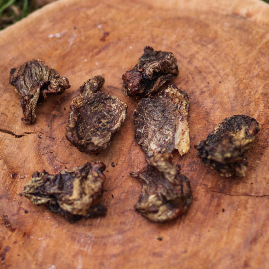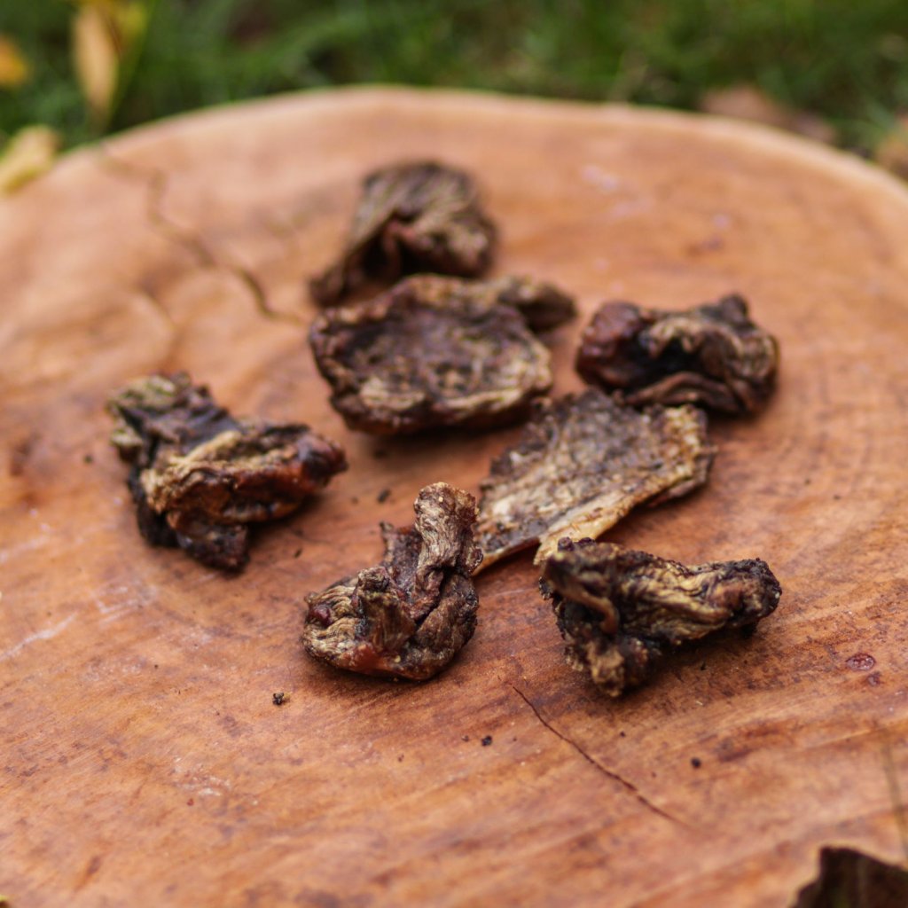 Dávkování: Sušené maso je skvělé jako pamlsek, když chcete chlupáče odměnit (třeba při výcviku) nebo mu prostě chcete udělat radost. Jen pamatujte, že i malý plátek je vyrobený z pořádného fláku masa, takže to nesmíte s dobrůtkami přehnat. Vzhledem k tomu, se jedná o 100% svalovinu plnou bílkovin, mohlo by dojít k „předávkování“. Takže odměňujte, ale po malých kouskách.