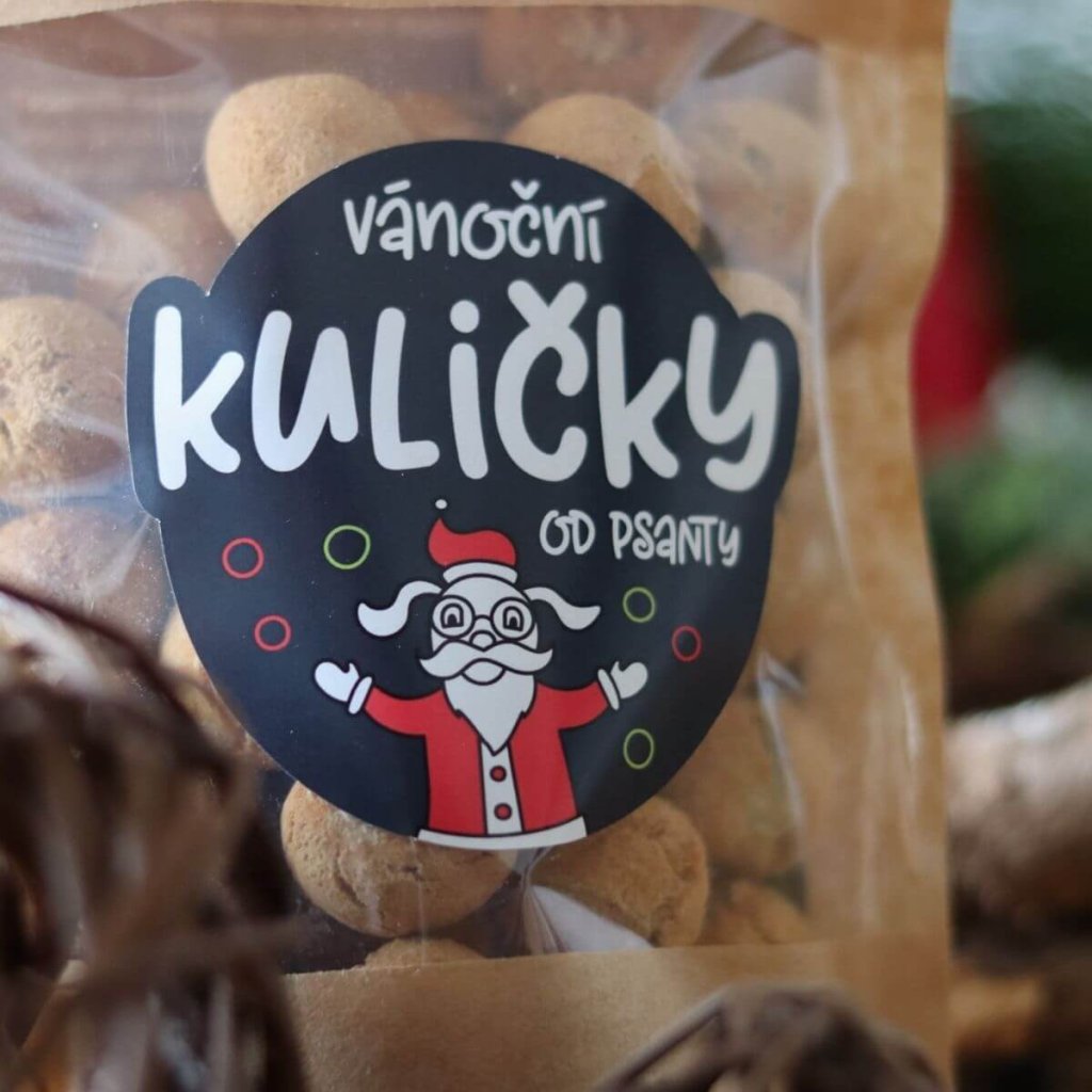 - speciální bezlepkové hovězí pamlsky Kuličky od Psanty, které upekli sami vánoční skřítci.