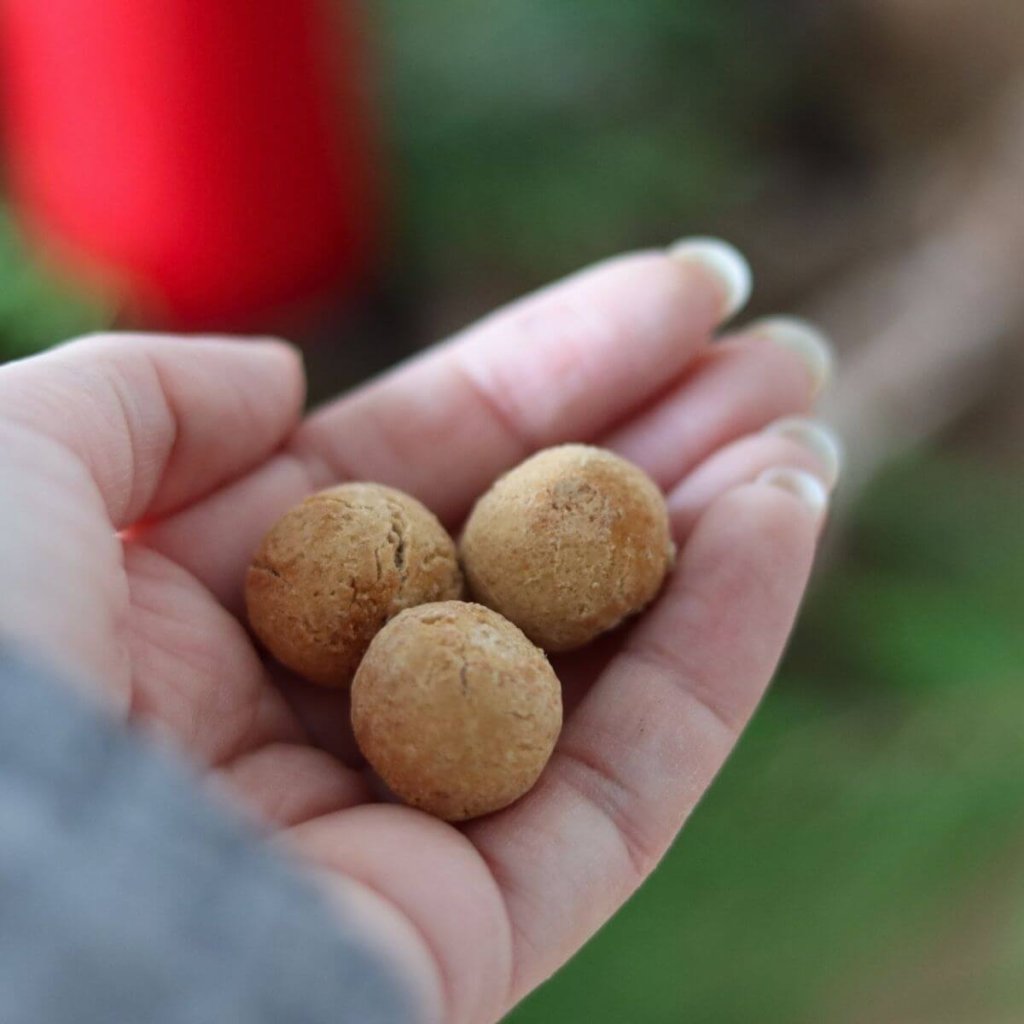 Kuličky od Psanty. Čerstvé hovězí maso, cizrnová a pohanková mouka, doplňkové minerální látky, vejce. Hmotnost 180 g.